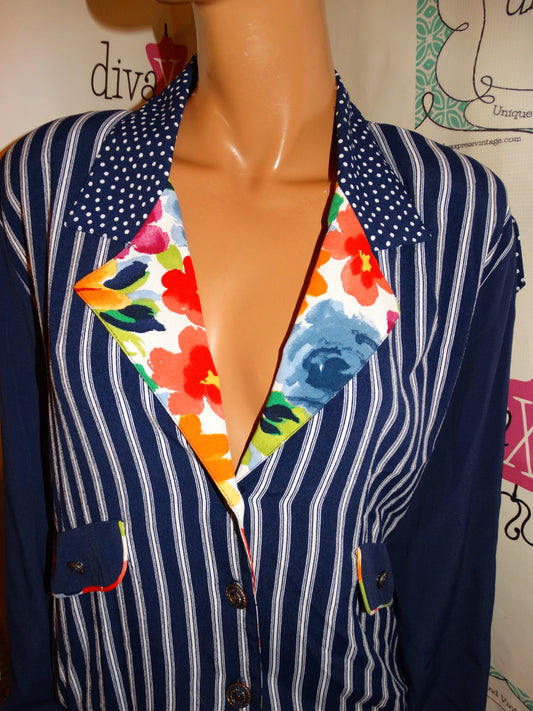Vintage Popvitch Blue/White Stripe Colorful Jacket Size XL