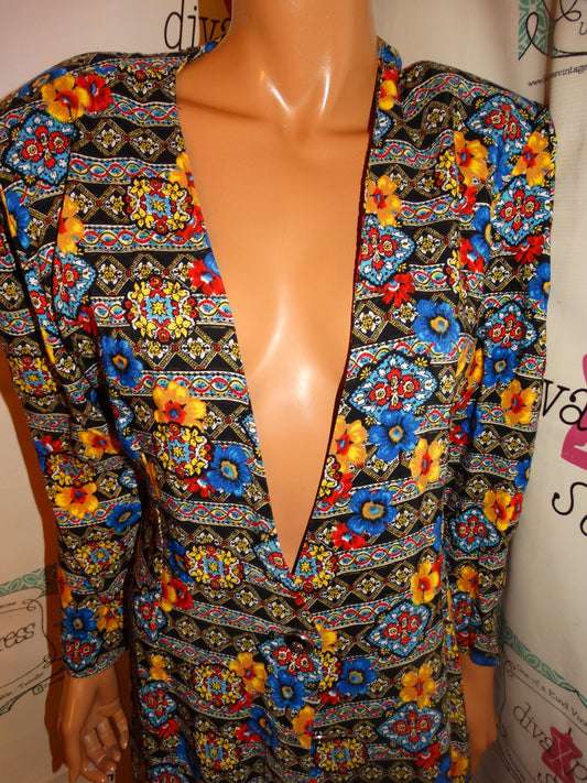 Vintage Praise Hymn Black Colorful Sequins Blouse Size XL