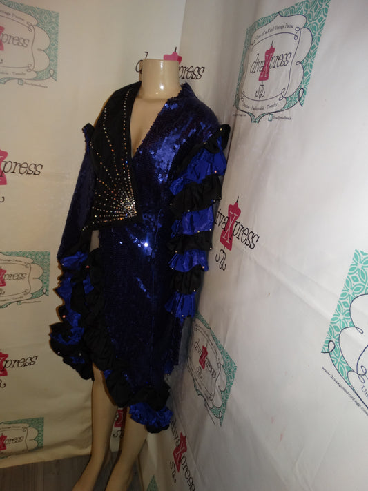 Vintage Purple and Black Sequins/Ruffle Dress/Dress Size M