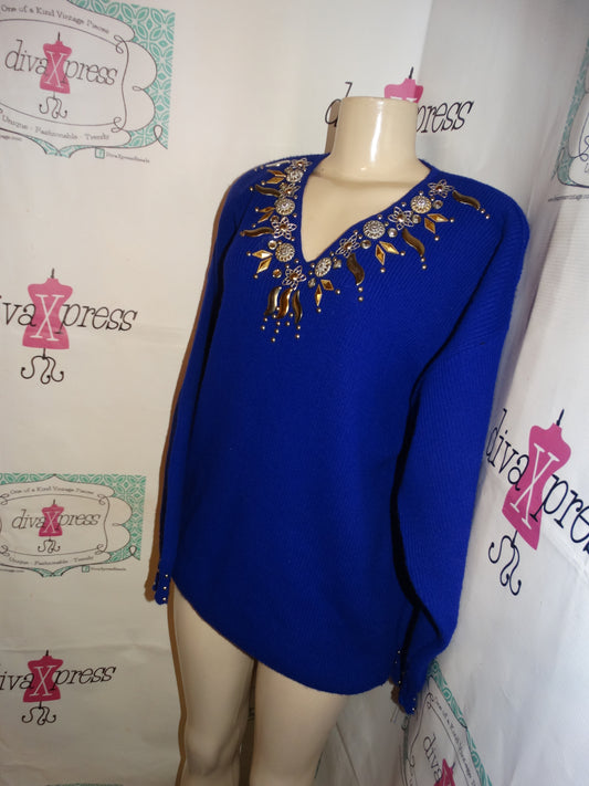 Vintage Pslams Purple/:Blue Sequins Long Blazer Size 1x