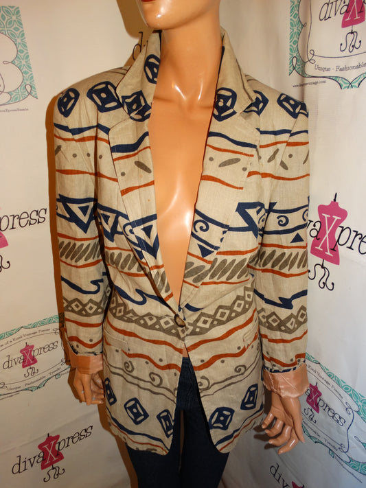 Vintage Tan Joy Blue/Pink Colorful Blazer Size 1x