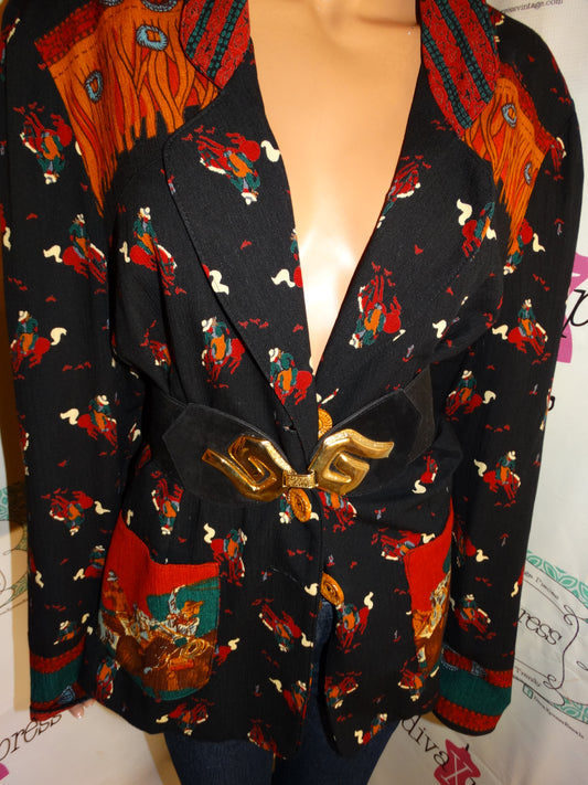 Vintage Jennifer Moore Black Colorful Blazer ( Belt Not Included) Size 1x