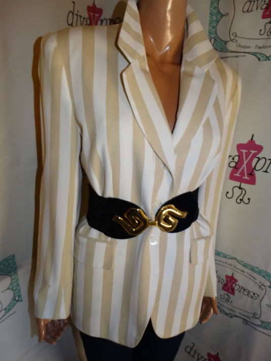 Vintage Jones New York Tan/White Stripe Blazer Size M