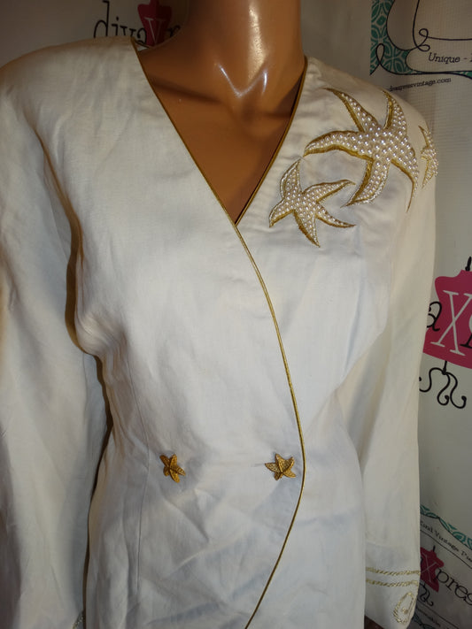Vintage Magali Cream/Gold Star Beaded Blazer Size XL