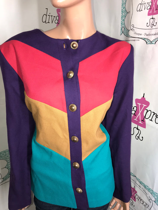 Vintage Megan Moore Purple Colorful Top/Blazer Size M