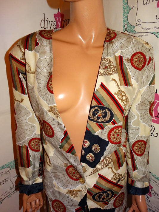 Vintage Silver Dragon Black/Blue Dragon Asian Blazer Size L