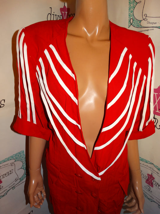 Vintage Olce REd/White Shingle Blazer Top Size XL