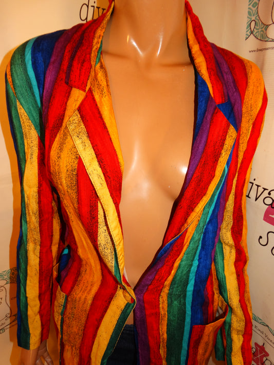 Vintage Randy Kemper White Colorful Stripe Blazer Size M