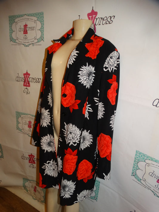 Vintage MEtro Sale Black Floral Long Blazer Size 2x