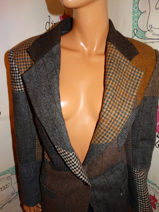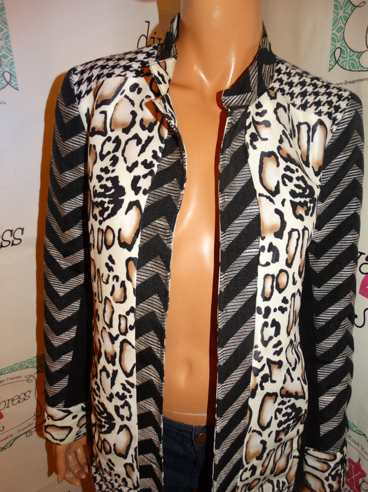 Vintage Moka Leopard/Black White Patch Long Blazer Size M
