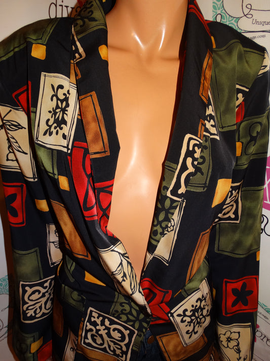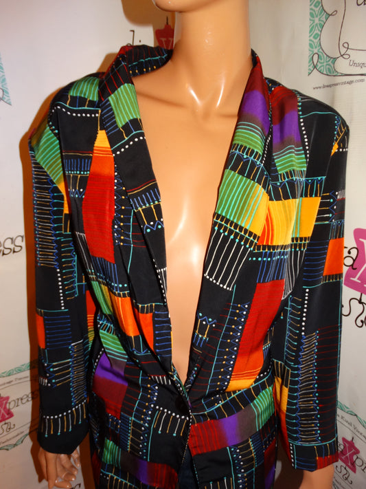 Vintage Kenngston Square Black Colorful Blazer Size 2x