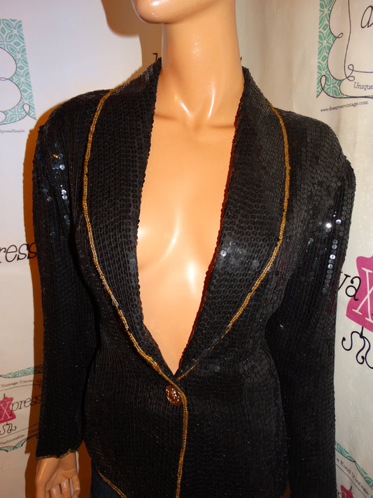 Vintage Ivana Black/Gold Sequins Blazer Size M