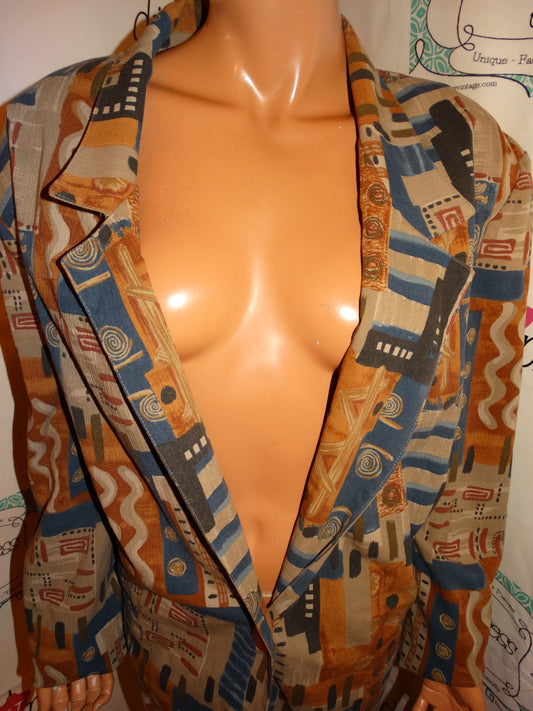 Vintage Toni Garment Tan/Blue Colorful Blazer Size 3x