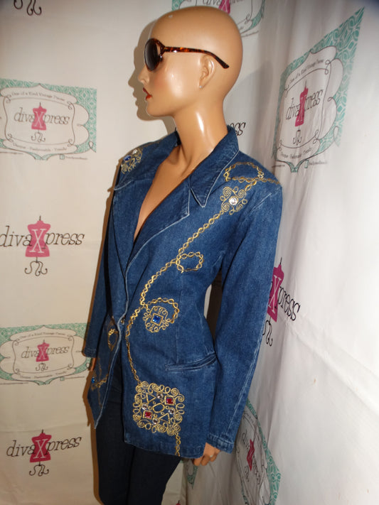 Vintage R & K Originals Blue JEan Beaded Blazer Size M