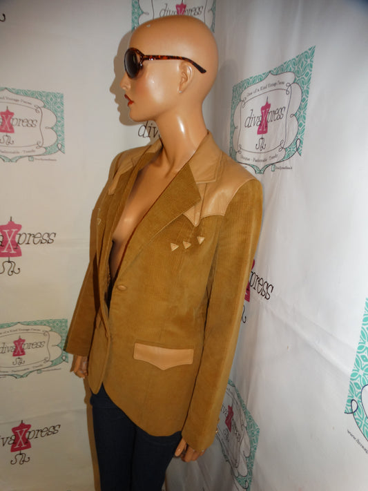 Vintage Pioneer Wear Tan Leather Patch Blazer Size S