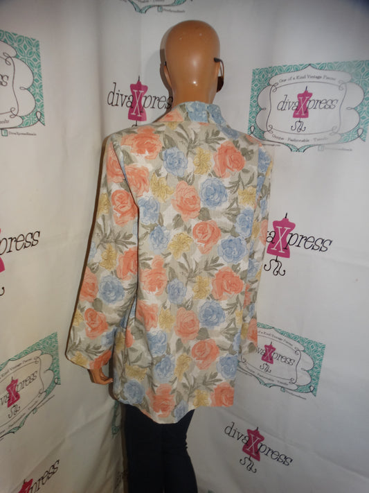 Vintage Jessica Scott Cream/Blue Floral Blazer Size XL