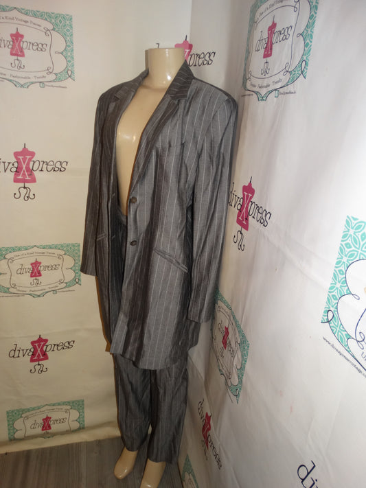 Vintage Kasper Gray/White Long Blazer Suit Size L-XL