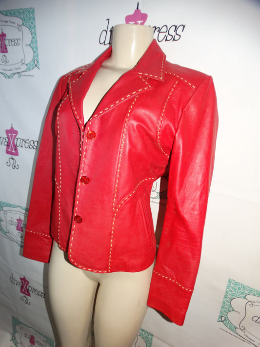 Vintage Northern Style Shingle Red Leather Jacket Size S