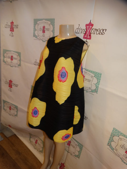 Vintage Black Yellow Floral Dress Size XL