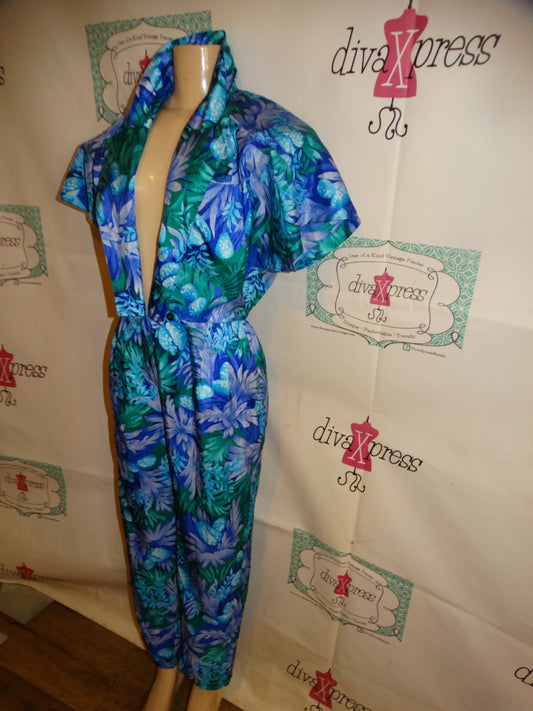 Vintage Joann Walters Green Floral Jumpsuit Size L
