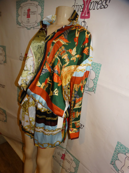 White Colorful Versace Style 2 Piece Short Set Size L