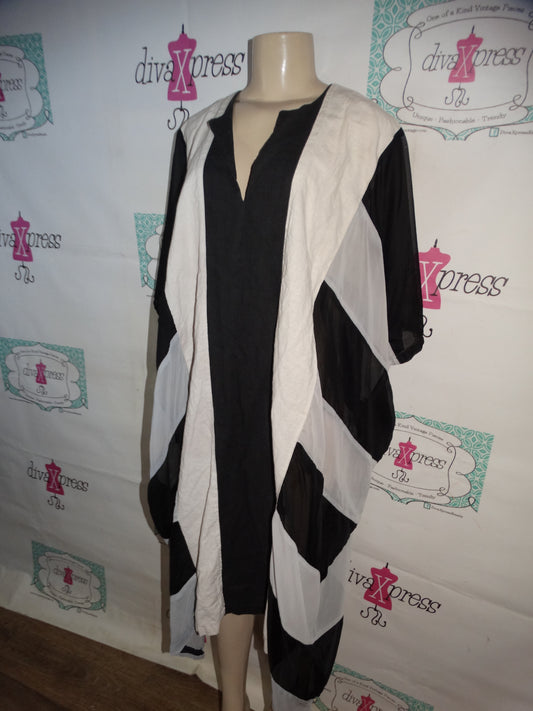 Black Faux Fur Chinchilla Coat Reversible Long Coat Size XL