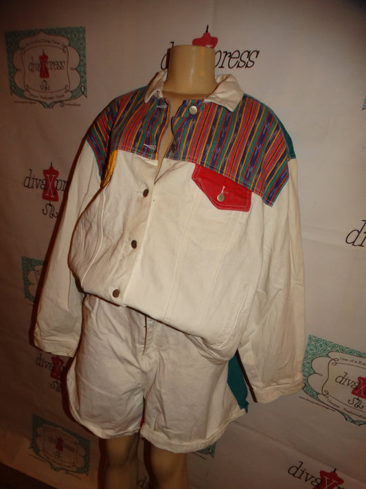 Vintage Para Silk Cream Sailor Print Jacket Size L