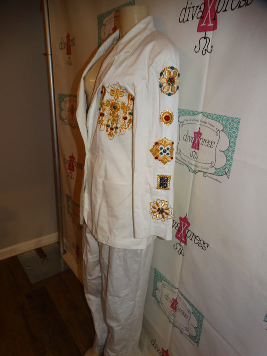Vintage Jenna 2 Piece White beaded Suit Size L