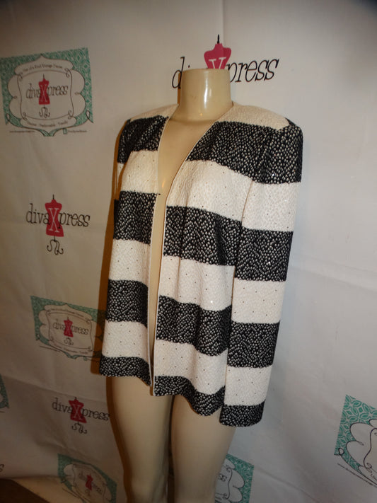 Vintage St John Black/White Stripe Sweater Cardigan Size L