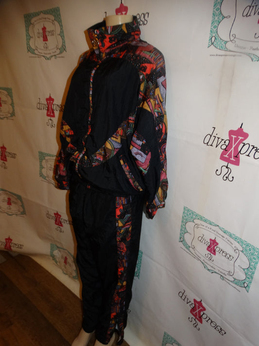 Vintage Rafael Black Colorful 2 Piece Track suit Size XL