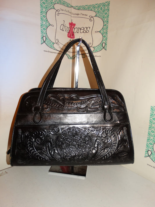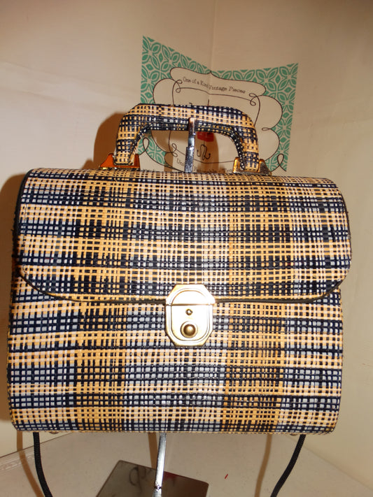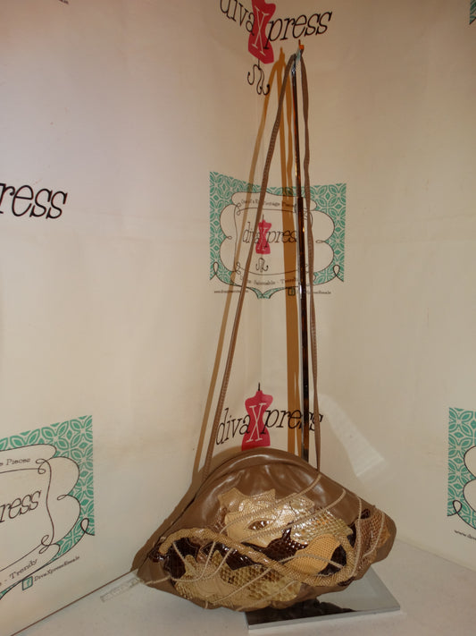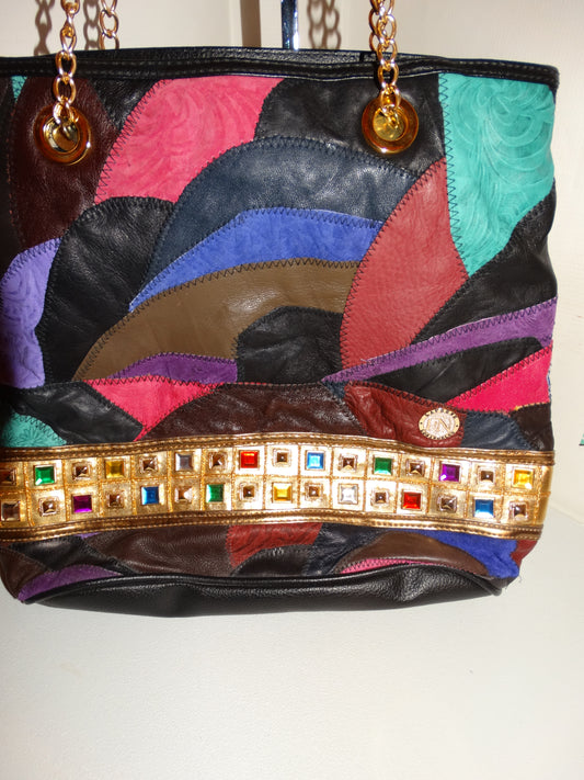 Vintage Colorful Leather Patch Gold Detail Purse Size XL