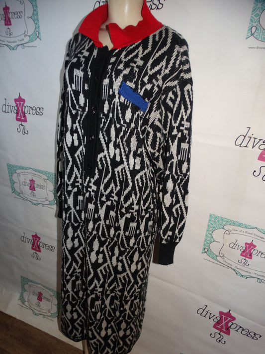 Vintage Jennifer Moore Black and White Sweater Dress Size 2x
