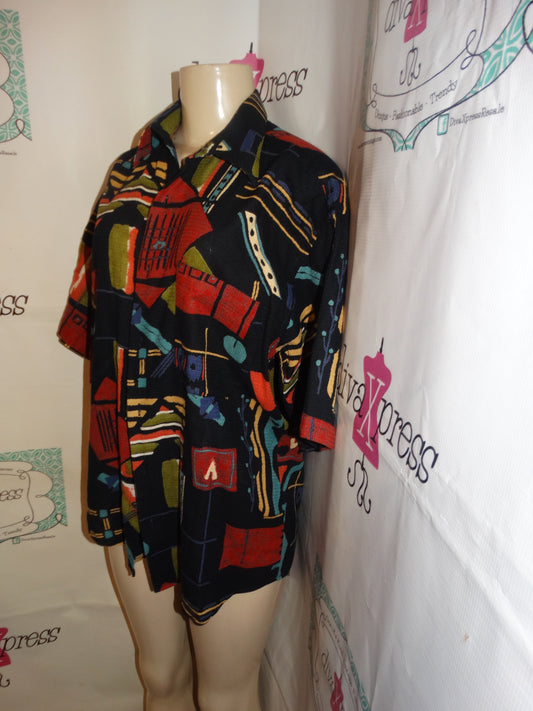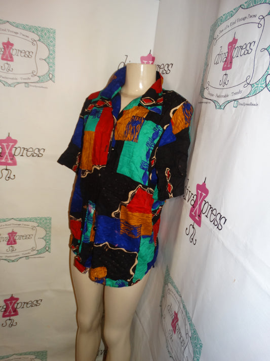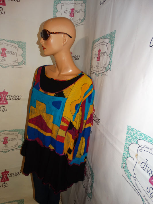 Vintage Jason Maxwell black Colorful Top Size 2x