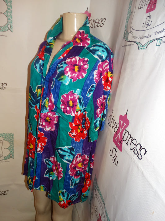 Vintage Surya Blue Floral Colorful Blouse Size L