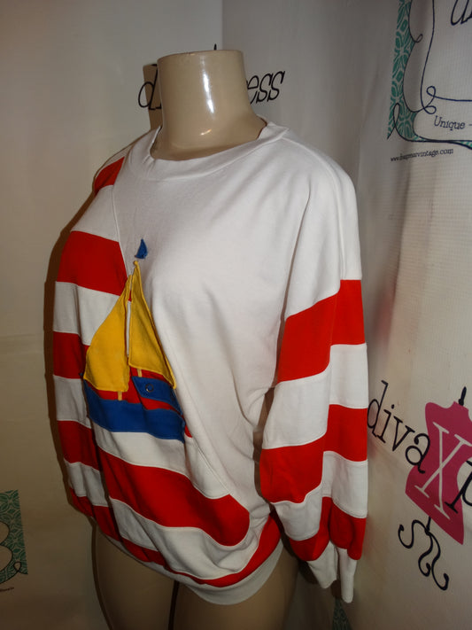 Vintage Pmkettes White/Red Sailboat Top Size S