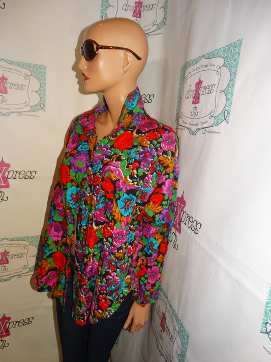 Vintage Pretty Blue Blue Jean Floral Blouse Size M
