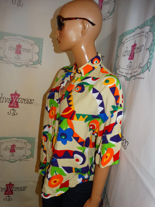 Vintage Sherri Sherman Black Colorful Blouse Size M