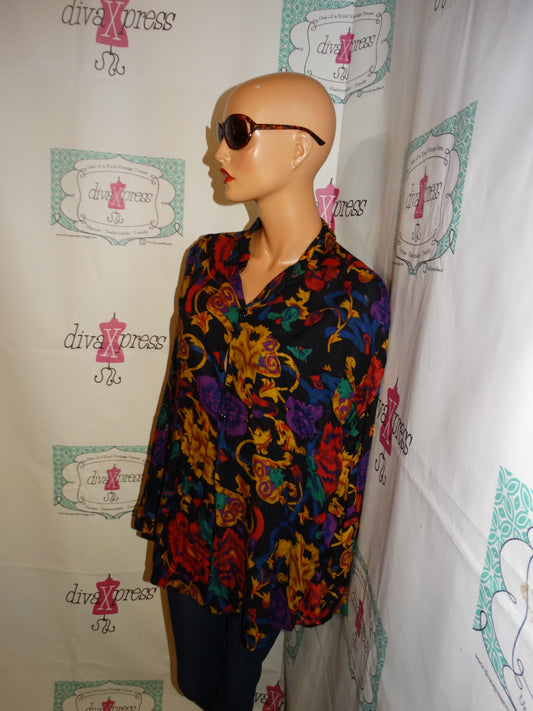 Vintage Thumbs Up Black Floral Blouse Size XL