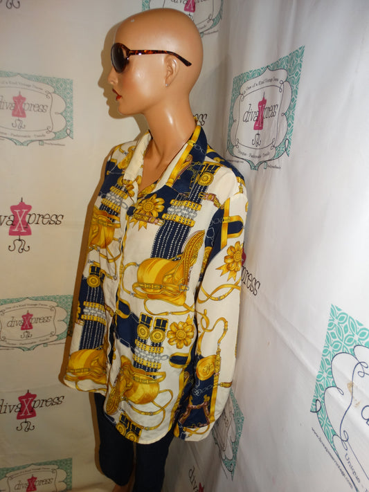 Vintage Viva Vida Cream Versace Style Chain Blouse Size XL