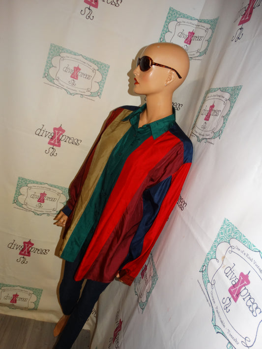 Vintage Stut Collection Green/Burgundy/ Tan Color block Top Size 1x