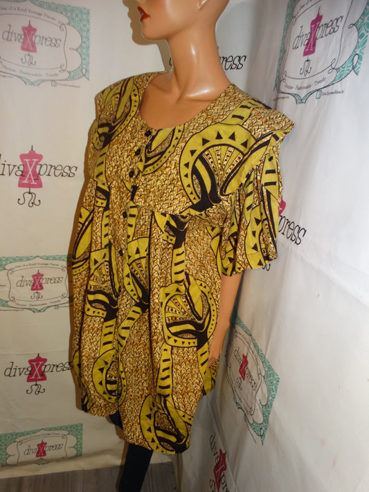Vintage The African Village Green/Brown Top Size 2x