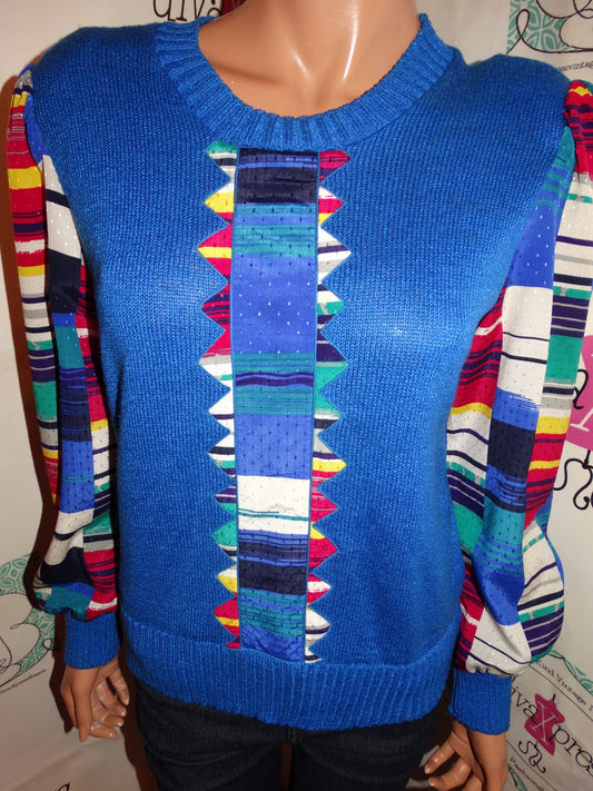 Vintage Leslie Fay Blue Colorful Blouse Size S