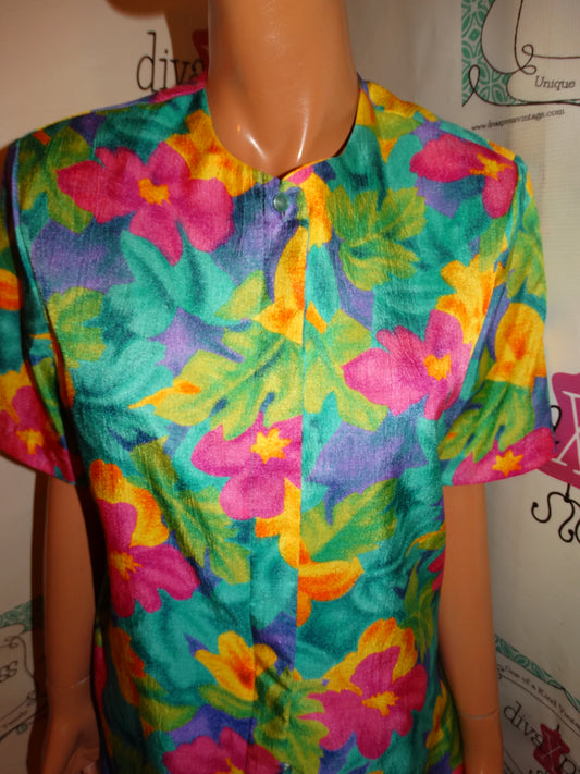 Vintage Kelly & Co Gree Colorful Floral Blouse Size L