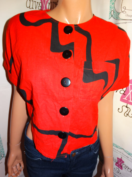 Vintage Tommy Hilfiger Red/Cream Blouse Size XL