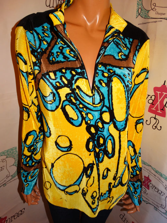 Vintage Jamie Sadock Yellow Blue Blouse Size XL