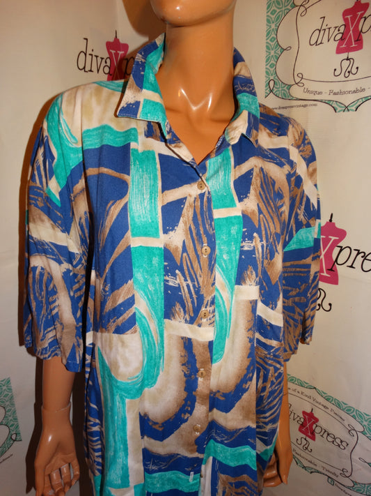 Vintage Plus Preferred Blue/Tan Blouse Size 3x