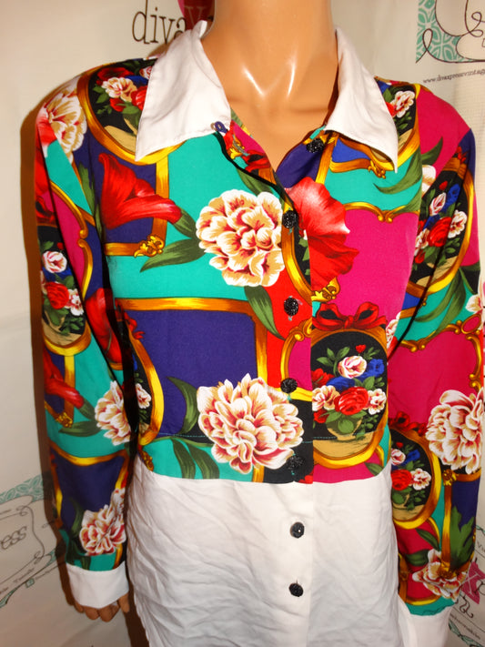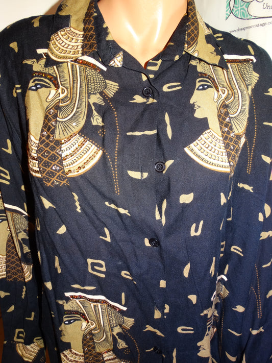 Vintage Original Anthony Black/Green Face Blouse Size L
