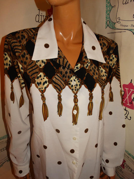 Vintage Willow Ridge White/Black Chain Blouse Size L