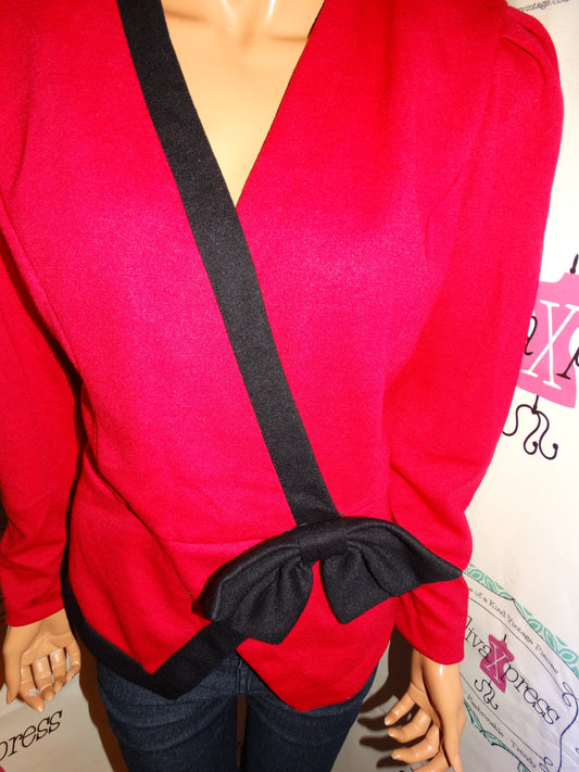 Vintage Jessica Howard Pink Bow Peplum Top Size XL