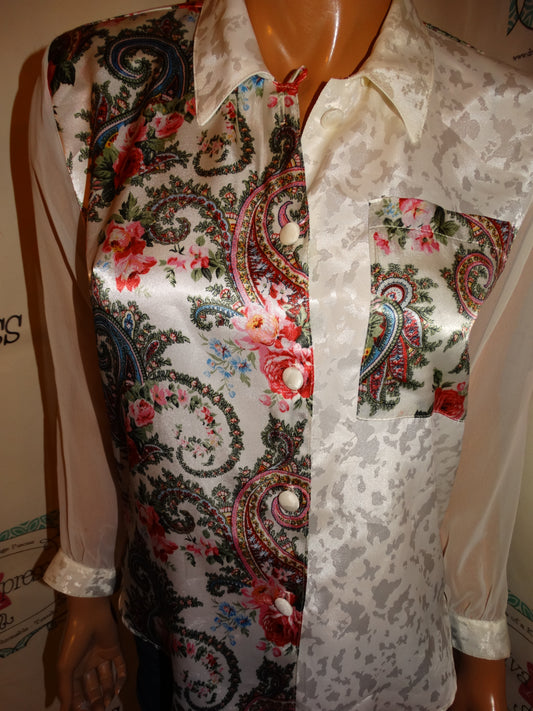 Vintage Petite Impressions Cream Floral Sheer Sleeve Blouse Size S